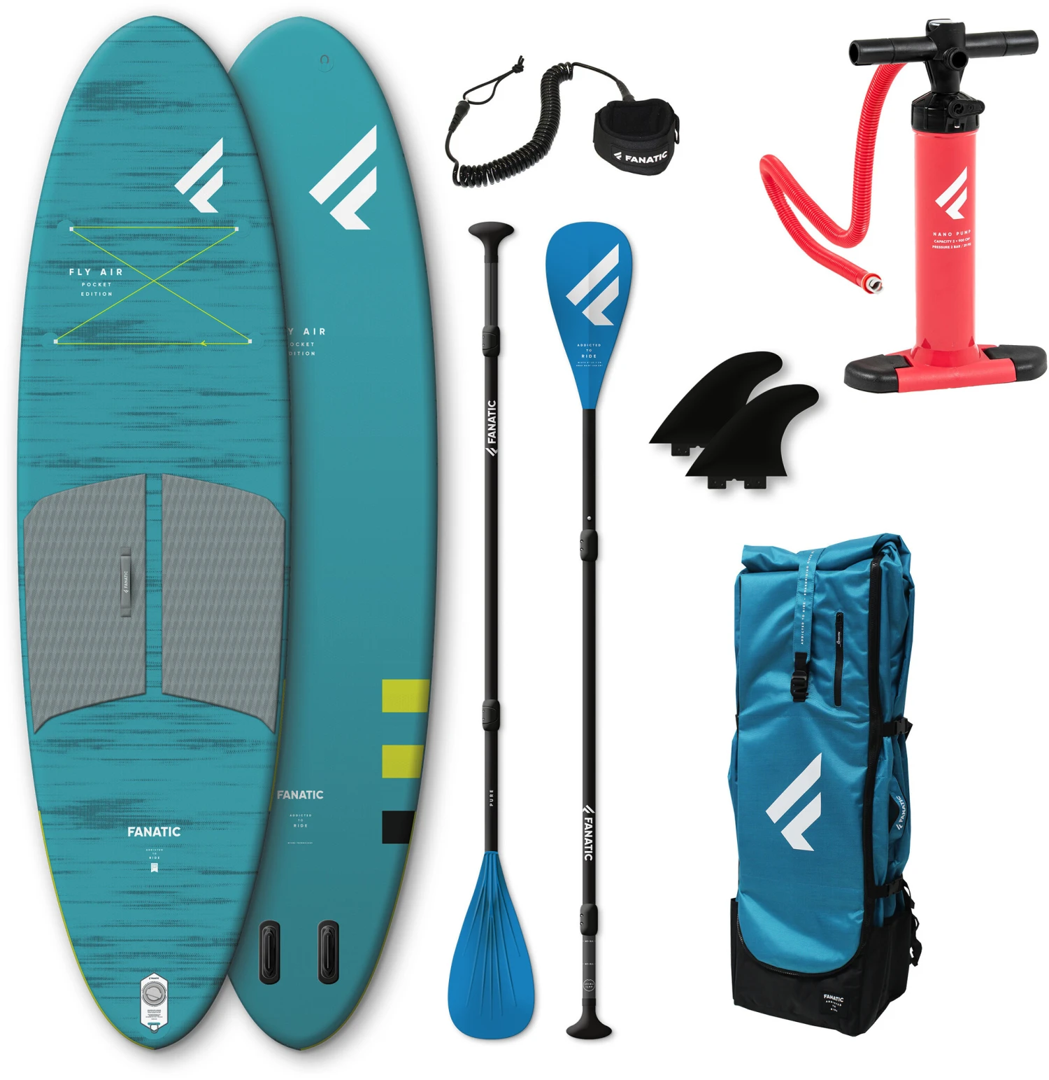 Gloednieuw voor 2021, Fanatic’s ultra-compacte Fly Air Pocket all-around SUP komt in een lichtgewicht en robuust ontwerp dat zorgt voor 100% SUP plezier met 50% minder pakvolume. Met een dunner dek pad, mini klik vinnen en een stevige maar flexibele constructie, kan de Fly Air Pocket worden opgerold en opgeborgen in een rugzak half de breedte van de traditionele iSUPs. Gebaseerd op Fanatic’s populaire all-rounder Fly Air 10’4″ – met uitstekende stabiliteit van de tip en een geweldige glide – is de Fly Air Pocket het perfecte beginnersboard.