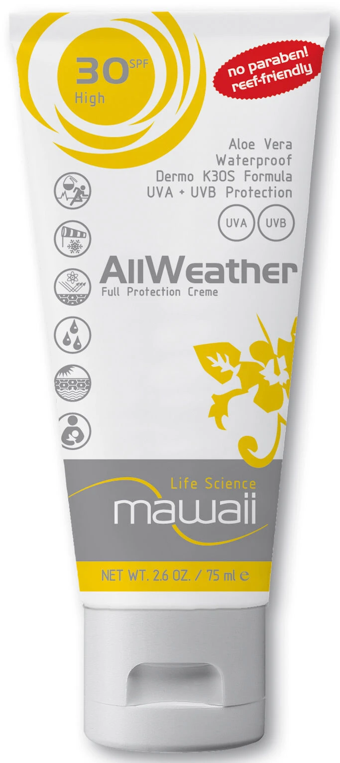 De Allweather Protection Cream beschermt tegen wind, kou, zon en uitdroging. Speciaal ontwikkeld voor buitensporten, biedt het dankzij de Dermo K3OS-formule (kaarsboomextract) bescherming voor de huidcellen tegen UV-straling, luchtvervuiling en vrije radicalen. AllWeather is geschikt voor alle huidtypen en leeftijden, het is dermatologisch getest en hypoallergeen.