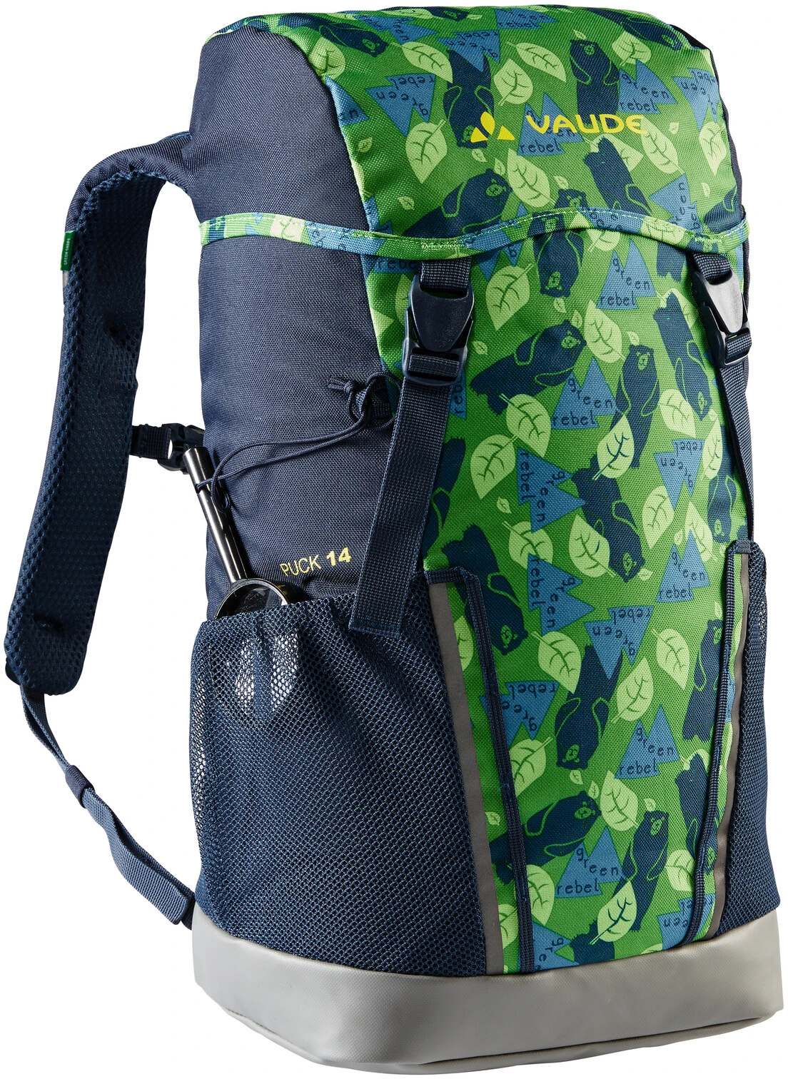 De Puck 14 kinderrugzak is compleet herzien en in de actuele versie nóg beter aan de wensen van de kinderen aangepast. Hij beschikt over een waterdichte bodem en kan daardoor probleemloos op vochtige en natte ondergrond worden gezet. Zijn speciaal op kinderen gerichte draagsysteem met verstelbare borstriem zorgt voor een hoog draagcomfort. Voor regenbuien is een hoes aan boord, daarbij komen twee ruime buitenvakken, een licht gepolsterde zitmat, reflecterende print en een topvak, dat plaats biedt voor zakdoeken en kleine spulletjes. Opdat ook de ontdekkingsdrang voldoende wordt gestild, heeft VAUDE de Puck 14 kinderrugzazk van een loep voorzien: Kleine schatten en anderen dingen, die onderweg gevonden worden, kunnen daarna aan de materiaallussen van de rugzak worden bevestigd. Zo is de Puck 14 een echt universeel genie voor het natuurkinderdagverblijf, wandelvakantie en de eerste avonturen in de bergen. Deze rugzak bestaat deels uit gerecycled materiaal en is met Eco Finish zonder fluorkoolstoffen (PFC) milieuvriendelijk waterafstotend gemaakt. Het VAUDE Green Shape-label staat voor een milieuvriendelijk, functioneel product uit duurzame, bluesign gecertificeerde materialen.